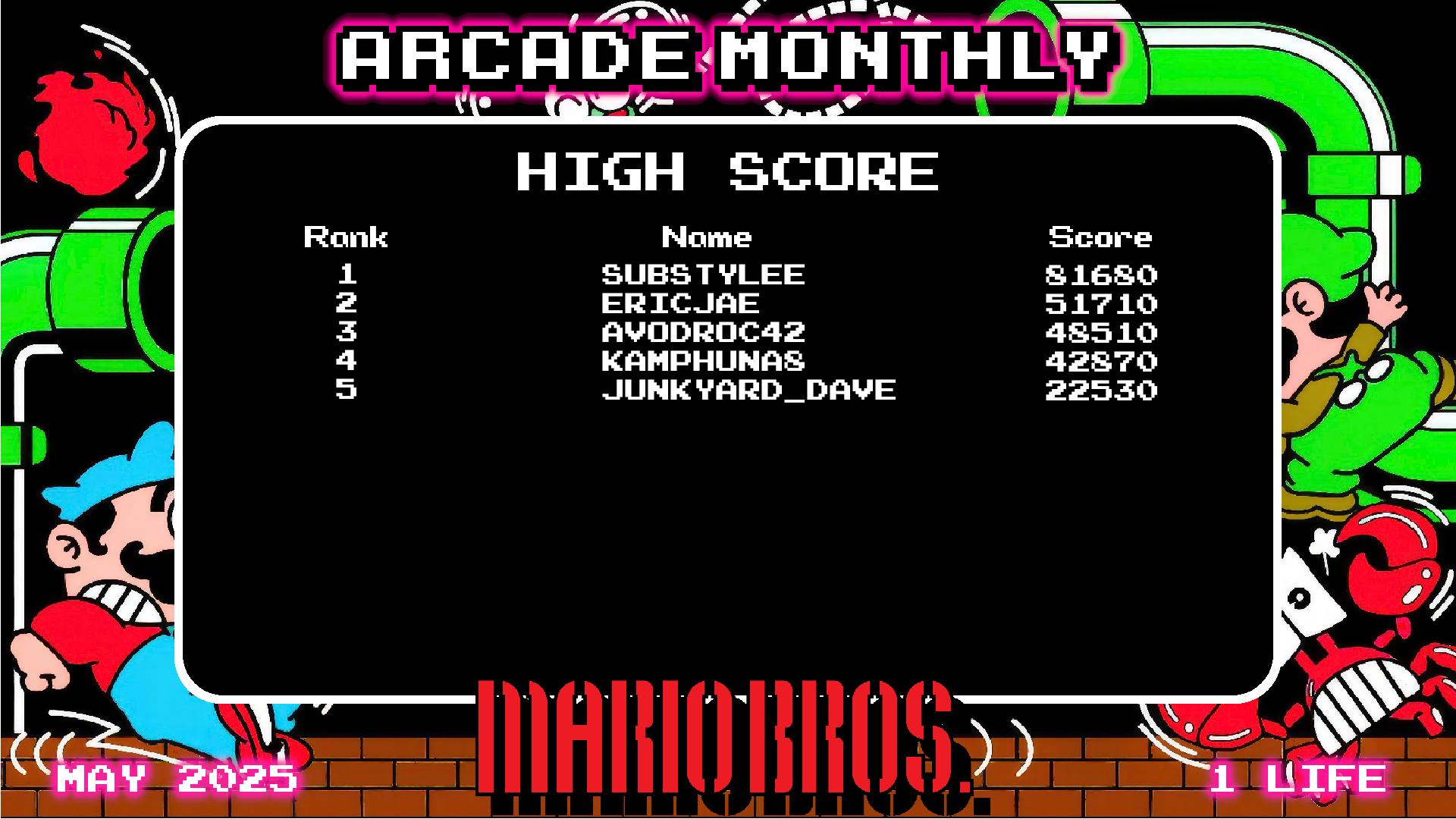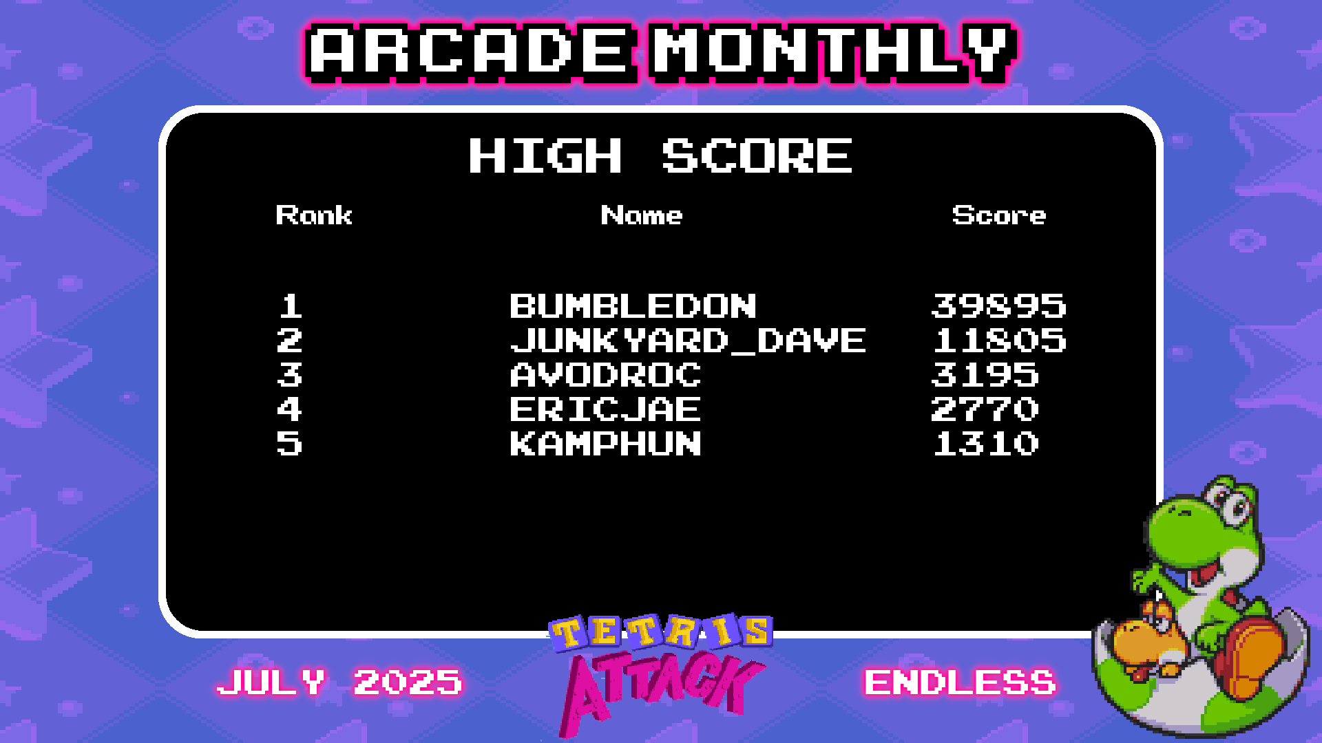 Feel free to join the Discord and follow our secondary Twitch channel where we sometimes stream the score attacks: ArcadeMonthly!
